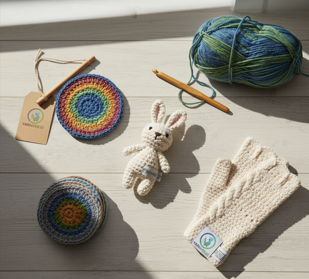 Step into the YARNVERSE and browse our constantly evolving selection of cozy clothes, whimsical crochet toys, charming keychains, and house decorations.